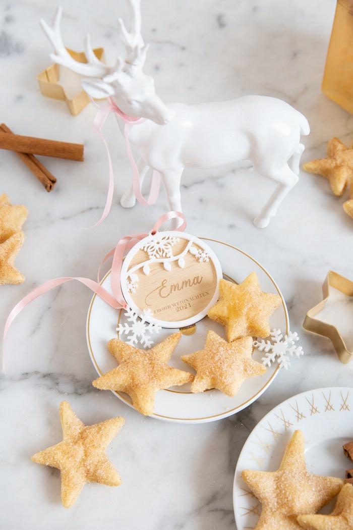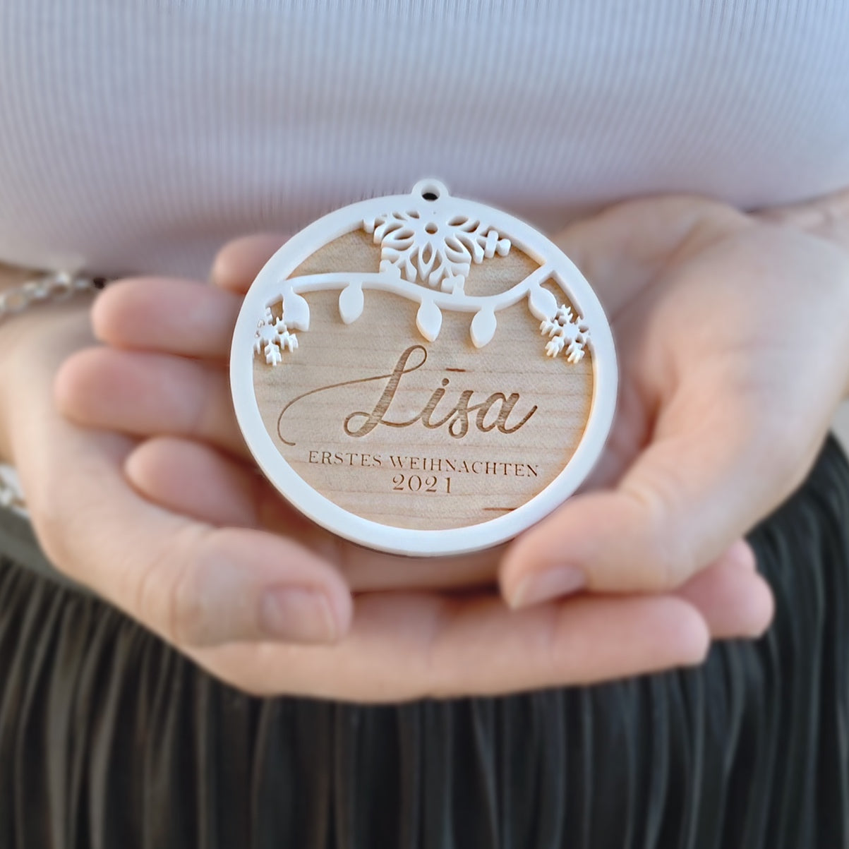 Ein Weihnachtsanhänger mit Namen personalisiert. Perfekt für den Weihnachtsbaum, das erste Weihnachten oder als Geschenkanhänger.